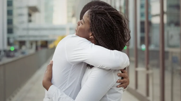a couple embracing to symbolize an amicable divorce